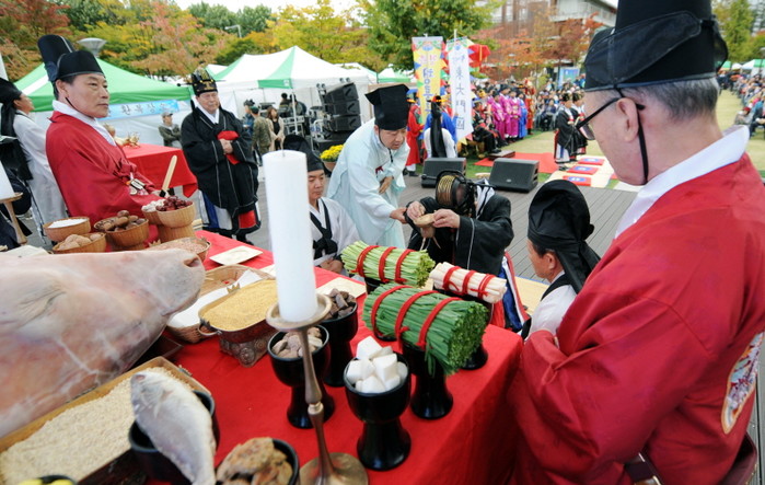 지난 23일 동대문구는 용두근린공원에서 전통문화 재연 행사인 ‘제26회 청룡문화제’를 개최했다. 사진은 청룡문화제 행사에서 동방청룡제향이 펼쳐지고 있는 모습.(사진제공=동대문구청)
