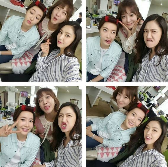 사진 속 서지혜는 지난 8월 종영한 SBS 주말드라마 '그래 그런거야'에서 함께 출연했던 배우 왕지혜, 신소율과 함께 '얼굴 몰아주기'를 하고 있다.