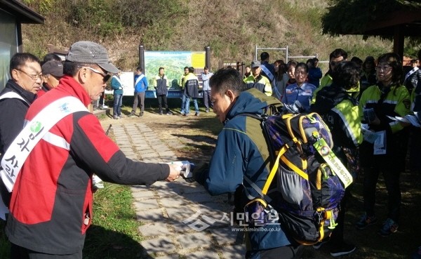 지난 30일 경기 양주시는 시청 뒷편 불곡산 등산로 입구에서 ‘산불방지 및 산지정화 캠페인’을 했다. 사진은 캠페인 참여자들이 등산객들에게 홍보물을 배부하는 모습.(사진제공=양주시청)