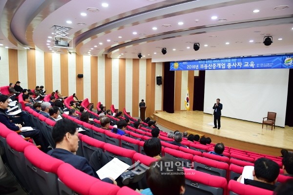 최근 경기 여주시는 여성회관 공연장에서 부동산중개업종사자 및 일반시민 등 180여명이 참석한 가운데 '부동산중개업 서비스 선진화 교육'을 실시했다. 사진은 교육에 앞서 원경희 시장이 단상에서 인사를 전하는 모습.(사진제공=여주시청)