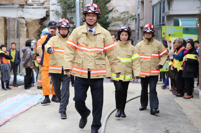 지난 4일 동작소방서는 신대방2동에서 김병기 의원(맨앞), 최영수·김애련 시의원, 최민규 구의회부의장, 소방공무원, 의용소방대원 마을주민 230여명이 참석한 가운데 화재없는 안전마을 만들기 행사를 실시했다.(사진제공=동작소방서)
