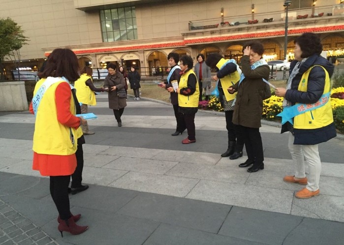 최근 성동구는 왕십리광장에서 우리동네 안전감시단, 안전모니터봉사단, 자율방재단 등 50여명과 함께 화재 및 산불예방 홍보 캠페인을 실시했다. 사진은 캠페인 참가자들이 주민에게 홍보 전단지를 배포하는 모습.(사진제공=성동구청)
