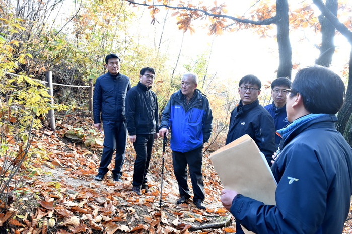지난 8일 김성환 서울 노원구청장은 아차산보루군에 포함된 수락산 보루를 찾아 정비 관련 현장 답사활동을 펼쳤다. 사진은 김 구청장(왼쪽에서 네번째)이 관계자들과 함께 보루 문화재를 둘러보는 모습.(사진제공=노원구청)