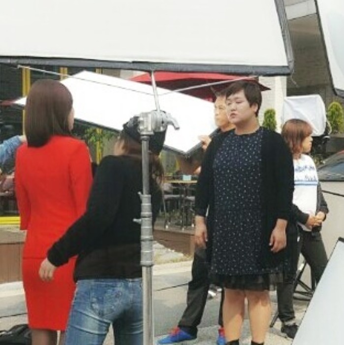 해당 사진 속에는 두 사람이 나란히 서서 KBS2 수목드라마 '공항 가는 길' 촬영을 함께 하고 있었다.