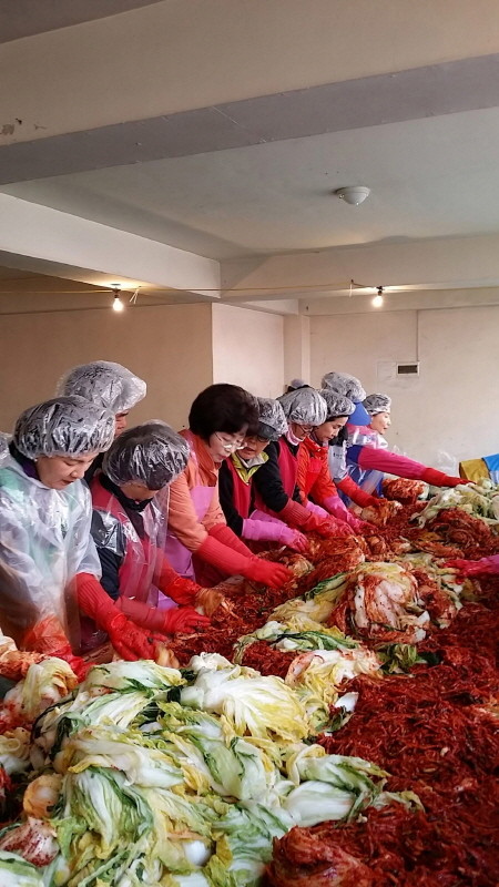 최근 서울 송파구 마천2동은 동주민센터 앞마당에서 주민 100여명이 함께한 가운데 ‘이웃과 따뜻한 정을 나누는 사랑의 김장 행사’를 개최했다. 사진은 참가자들이 김장을 담그는 모습.(사진제공=송파구청)