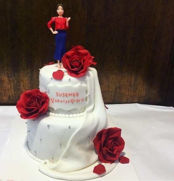 사진 속에는 임세미의 팬들이 준비한 2단 케이크가 담겨있으며 화려한 장미장식과 케이크 위에는 임세미의 모형이 올려져 있어 이목을 집중시켰다.
