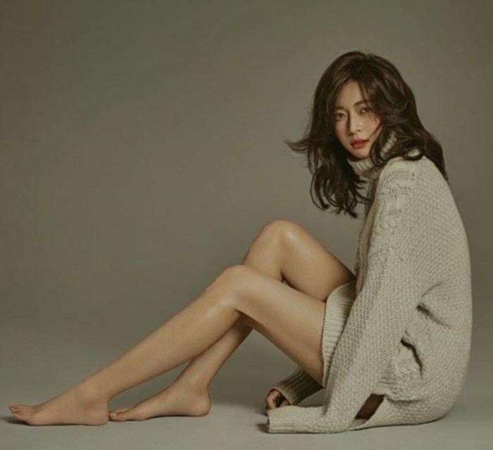 사진 속 나라는 긴머리를 늘어뜨린채 롱 스웨터를 입고 길고 이기적인 다리를 뽐내며 카메라를 응시하고 있다.
