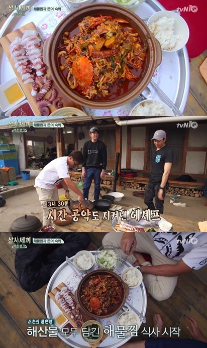 해물찜을 맛본 이서진은 "잘한다 잘해"라며 감탄했고, 나영석 PD는 엄청난 크기에 "10만 원짜리다"라며 놀라 했다.