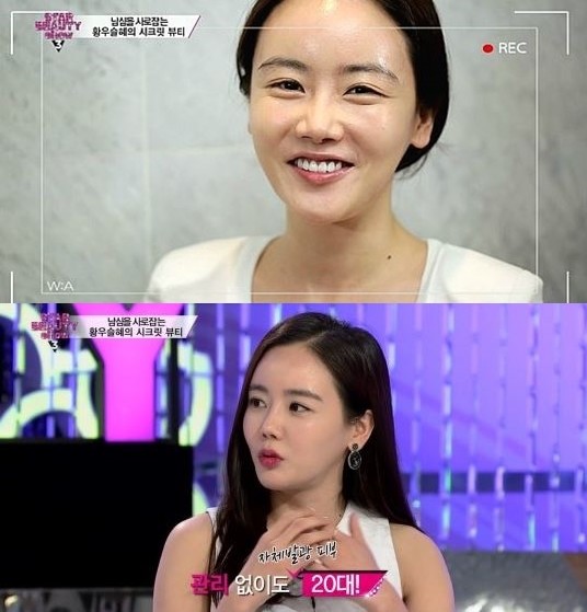 방송장면 속 황우슬혜는 무결점의 깨끗한 민낯을 자랑하고 있다.
