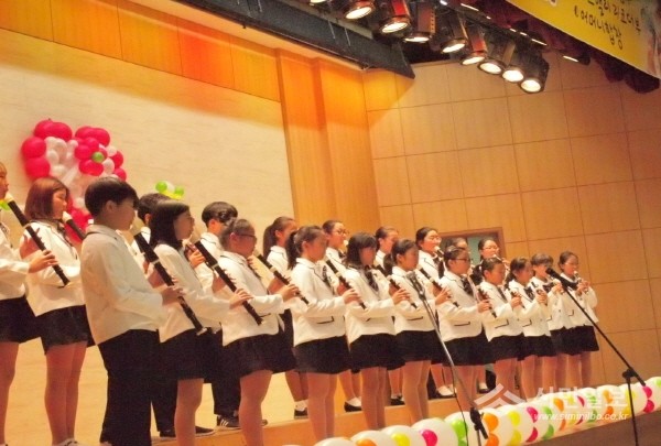 지난 11일 경기 부천시 오정초등학교는 오후 1시부터 오정관에서 '오정음악회'를 개최했다. 사진은 음악회에서 학생들이 리코더로 연주를 진행하는 모습.(사진제공=부천교육지원청)