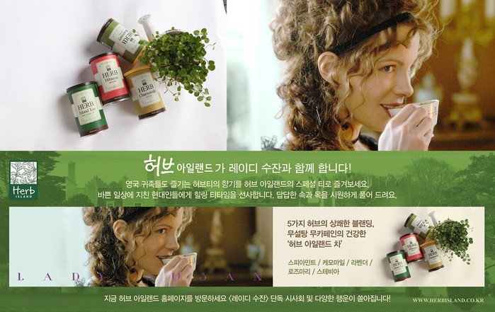 여기에 '레이디 수잔'을 예매하는 관객들에게 허브아일랜드에서 제공하는 천연 허브티, 비누, 립밤, 마스크팩 등 특별한 선물들을 증정한다. 또한 CGV, 롯데시네마, 메가박스 등 멀티플렉스를 비롯한 다양한 극장에서 허브아일랜드 마스크팩, 비누 선물 및 시음행사를 기획하고 있다.