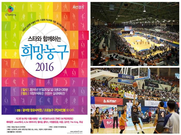 [시민일보=전용혁 기자] 사단법인 한기범희망나눔은 오는 20일 일요일 오후 2시 30분 의정부체육관에서 ‘스타와 함께하는 희망농구 2016’ 자선경기를 개최한다.