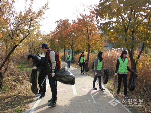 최근 서울 성동구도시관리공단은 노조위원장과 경영지원팀장을 포함해 30여명이 참여한 가운데 노사가 함께하는 '청계천 대청소 봉사활동'을 실시했다. 사진은 봉사 참가자들이 청계천 인근 쓰레기를 수거하는 모습.(사진제공=성동구도시관리공단)