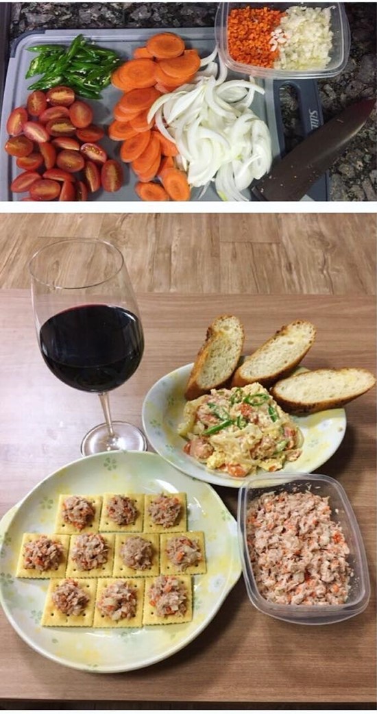 공개된 사진 속에는 사진에는 그가 직접 요리한 참치 카나페와 싹쓸이팬이란 이름의 요리가 식탁에 놓여있는 모습이 담겨있다.