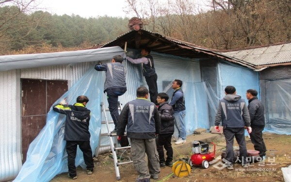 최근 경기 양평군 양동면 의용소방대가 지역내 홀몸노인 가구를 방문해 겨울 대비 '집수리 봉사활동'을 펼쳤다. 사진은 소방대원들이 집수리 작업을 하고 있는 모습.(사진제공=양평군청)