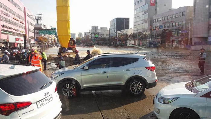 사고의 원인은 석촌역 사거리 9호선 지하철 H빔 매립작업 도중 4번 출구쪽 상수도관 700mm가 파열돼 이같은 결과를 불러일으킨 것으로 보인다.
