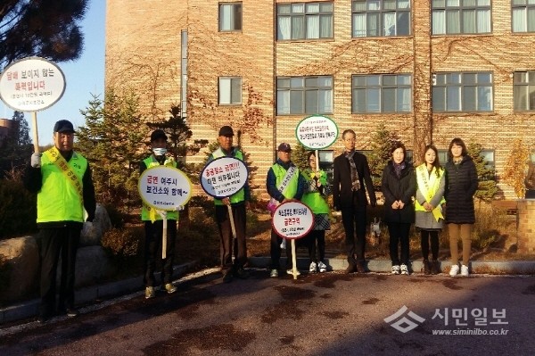 최근 경기 여주시보건소는 '2017학년도 대학수학능력시험' 전후로 지역내 수능고사장 4개교 주변지역을 대상으로 '금연 지도점검 강화 및 금연예방 캠페인'을 실시했다. 사진은 캠페인 참가자들이 피켓을 들고 홍보하는 모습.(사진제공=여주시청)
