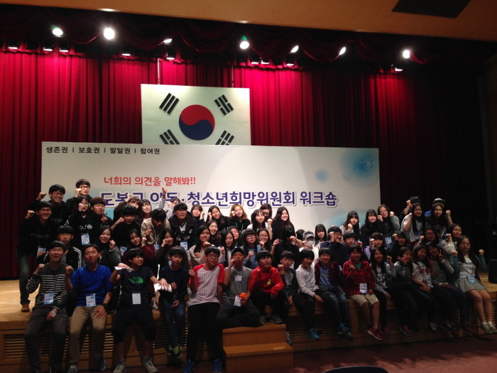 | ▲ 지난 4월 도봉구가 구청 대강당에서 연 '아동ㆍ청소년 희망위원회 워크숍'에서 아동ㆍ청소년 위원들이 워크숍을 마치고 기념촬영을 하고 있다. | ||