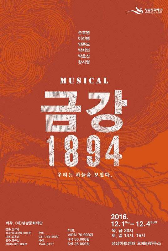 신동엽 시인의 장편 대서사시 ‘금강’을 원작으로 한 이번 뮤지컬 <금강, 1894>는 성남문화재단이 지난 2009년 뮤지컬 <남한산성> 이후 7년 만에 선보이는 자체 제작 뮤지컬이다.
