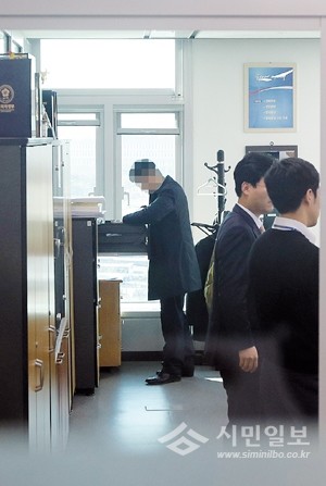 검찰 특별수사본부 관계자들이 24일 오전 SK·롯데그룹 면세점 사업 관련 의혹과 관련해 정부세종청사 기획재정부 정책조정국장실을 압수수색 하고 있다