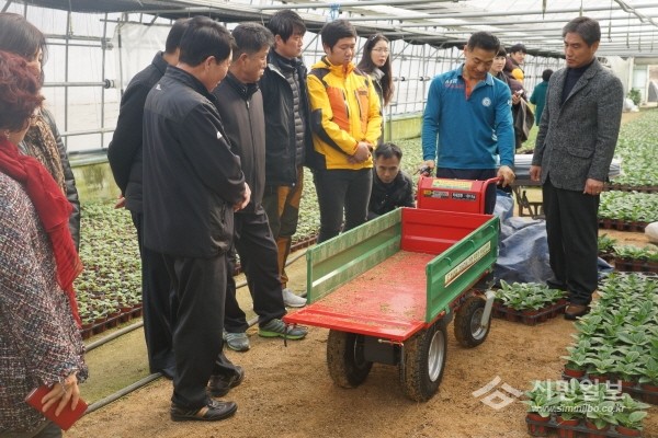 지난 23일 경기 용인시는 농업기술센터 소회의실에서 농촌의 다양한 자원을 활용해 고부가가치를 창출하는 ‘농촌자원육성 사업’ 평가회를 개최했다. 사진은 참가자들이 영농현장을 방문해 둘러보고 있는 모습.(사진제공=용인시청)