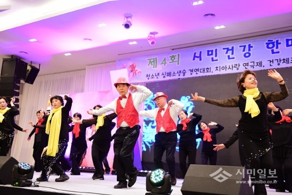 지난 24일 경기 화성시는 푸르미르호텔(안녕동 소재)에서 시민들의 건강관리의 중요성을 재확인하고 실천의지를 다지는‘2016년 제4회 시민건강 한마당’을 열었다. 사진은 행사 참가자들이 건강체조를 선보이는 모습.(사진제공=화성시청)