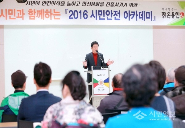 최근 경기 용인시는 시민의 안전의식을 높이기 위해 수지구청 대회의실에서 통·이장, 주민자치위원, 기관, 단체회원 등 88명을 대상으로 ‘시민안전 아카데미’ 교육을 실시했다. 사진은 정찬민 시장이 인사말을 전하는 모습.(사진제공=용인시청)