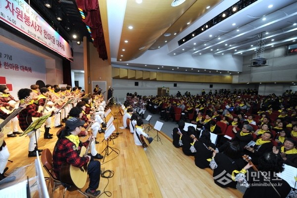지난 1일 경기 오산시는 시청 대회의실에서 '2016년 자원봉사의 날 기념 제15회 자원봉사자 한마음 대축제'를 개최했다. 사진은 축하행사로 통기타 공연이 펼쳐지고 있는 모습.(사진제공=오산시청)