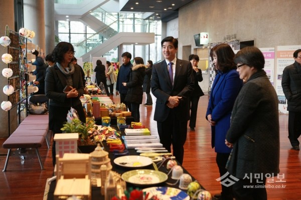 지난 5일 서울 강동구는 강동아트센터에서 ‘공동체에서 감동하다’라는 주제로 '강동 혁신교육지구 한마당 축제'를 개최했다. 사진은 이해식 구청장(오른쪽에서 세 번째)이 축제 행사장을 둘러보고 있는 모습.(사진제공=강동구청)