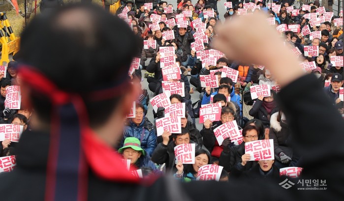 민주노총은 이날 오전 10시 국회 앞에서 기자회견을 열어 “미르·K스포츠 재단에 재벌이 출연한 800억원은 기부금이 아니라 뇌물이고 재벌은 비선권력의 몸통”이라고 주장했다.