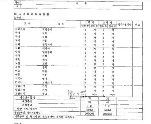 최순실씨의 조카 장시호의 성적표가 공개됐다.