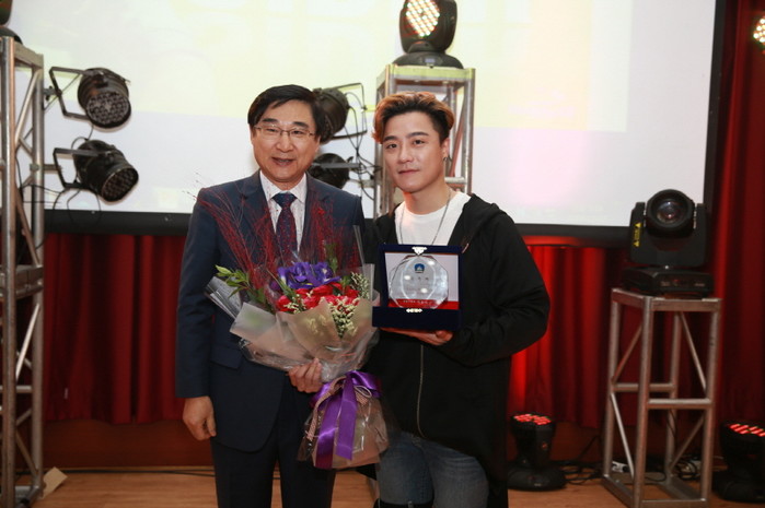 지난 7일 도봉구는 속사포 랩으로 유명한 래퍼 '아웃사이더(본명 신옥철)'를 4번째 '도봉구 홍보대사'로 위촉했다. 사진은 이동진 구청장(왼쪽)이 아웃사이더에게 위촉패를 전달하고 기념촬영하는 모습.(사진제공=도봉구청)