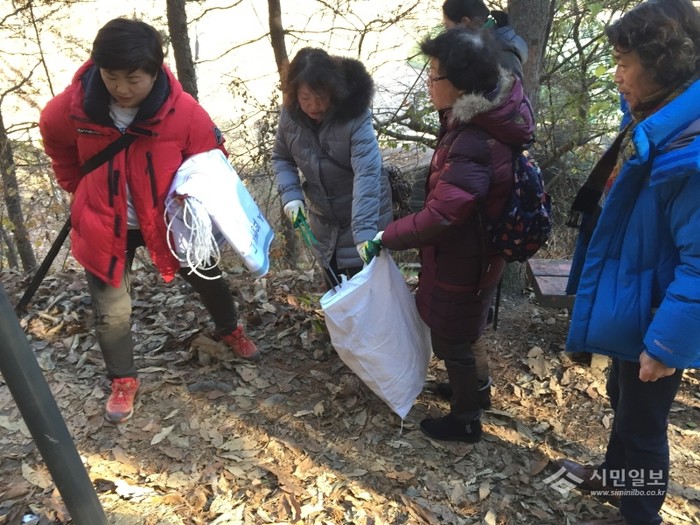 최근 서울 은평구 갈현2동은 동절기를 대비해 ‘우리 마을 속살 들여다 보기’라는 주제로 권역별 대표 및 통장과 함께 등산로 정비에 나섰다. 사진은 행사 참가자들이 등산로 주변 쓰레기를 줍고 있는 모습.(사진제공=은평구청)