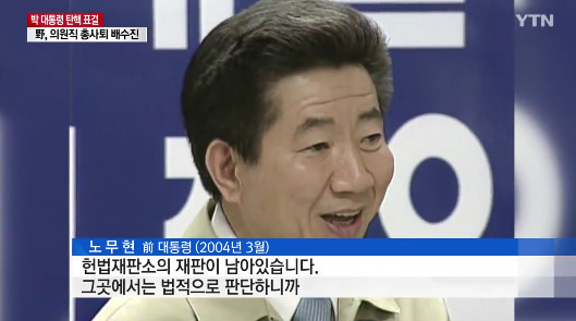 한편 노무현 전 대통령은 2004년 선거법 위반을 이유로 탄핵이 가결됐으나 2개월 뒤 헌법재판소에서 탄핵안을 기각됐다.