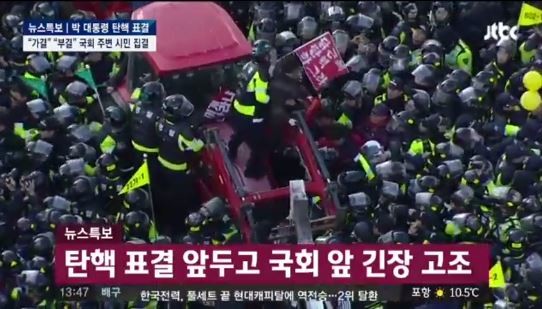 이 소식을 접한 네티즌들은 “나* 진짜 잘 몰라서 그러는데 전봉준 투쟁단만, 트랙터만 저렇게 죽어라 막는 이유 뭡니까?” “jhhc**** 트랙터는 제발 갖고 오지마세요 폭력시위 제발 하지마시고요 평화시위하시길 바랍니다...” “seek**** 국회의사당 앞길에서 핸드폰을 운전 중에 사용하는 것은 도로교통법에 위배되는 거히 아닌가요 법을 어기면 평등하게 처리해주시기 바랍니다” “ai11**** 멋있다!” “jinm**** 트랙터 세대 견인해감...드론을 띄워야하나” “sor***** 의미있는 행동이라고 생각됩니다”등의 다양한 반응을 보였다.