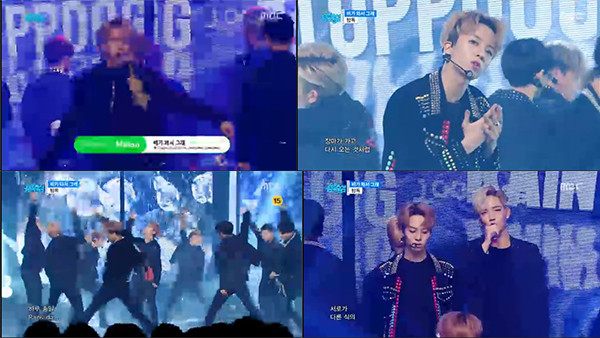 특히 탑독의 멤버 P군, 상도, 호준, 한솔, 제로, 비주, 낙타, 야노, 아톰은 블랙의상으로 가사와 어울리는 그리움 가득한 무대를 보여 시청자들의 눈길을 끌었다.