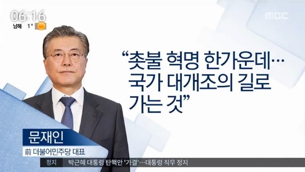 대통령 탄핵은 끝이 아니라 시작이라며, 이른바 '촛불 혁명'으로 국가 대개조의 길로 가야 한다고도 했다.