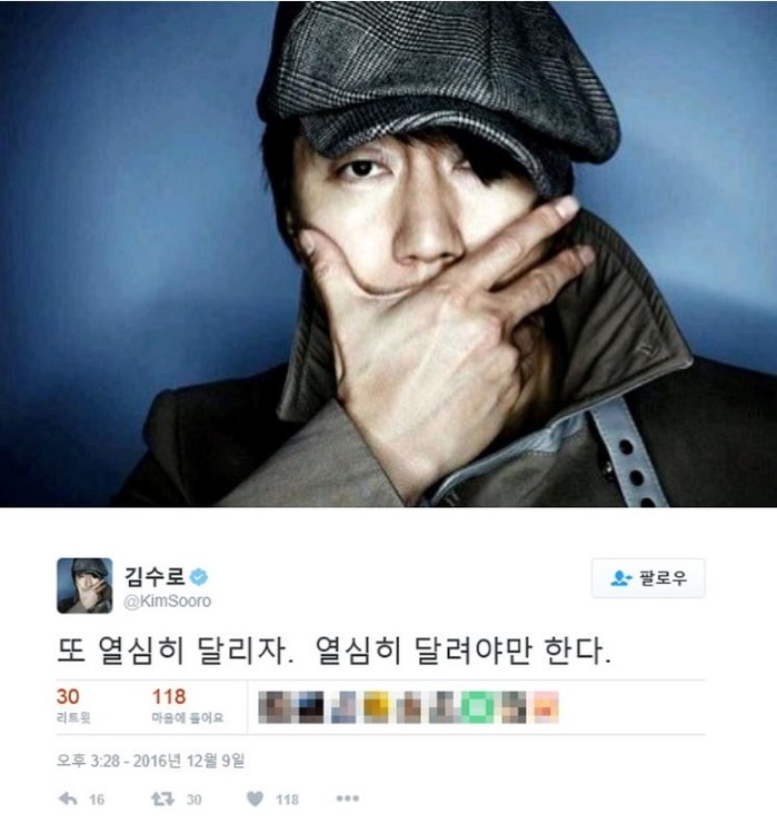 한편 배우 김수로는 몰래 카메라를 소재로 한 프로그램에 대해 불편한 심경을 드러낸 글을 삭제한 후 열심히 살자라는 새로운 트윗을 올린상태다.