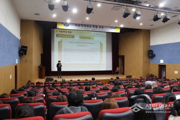 최근 경기 오산시는 오산시육아종합지원센터와 함께 중앙도서관 다목적실에서 지역내 어린이집 보육교직원 등 아동학대 신고의무자로 규정된 직군 200여명을 대상으로 아동학대예방 특별교육을 실시했다.(사진제공=오산시청)