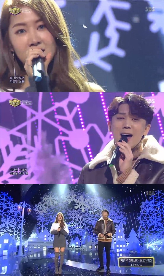 11일 오후 방송된 SBS '인기가요'에서는 소유와 정기고가 이날 오후 1시 공개된 스페셜 음원 프로젝트곡 '사랑은 이별보다 하나가 많아'로 무대를 펼쳤다.