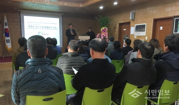 최근 경기 포천시농업기술센터는 장독대마을에서 마을주민, 관계기관 담당자 등 80여명이 모인 가운데 6차산업 수익모델 시범사업 ‘오디·누에 체험공간 조성’ 1차년도 평가회를 실시했다. 사진은 평가회가 진행되고 있는 모습.(사진제공=포천시청)
