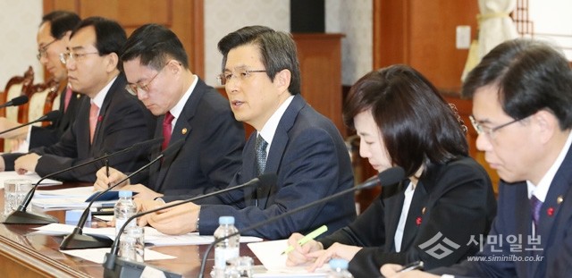 황교안 대통령 권한대행 국무총리가 12일 서울 종로구 세종로 정부서울청사에서 열린 AI 관련 관계 장관회의를 주재하고 있다.