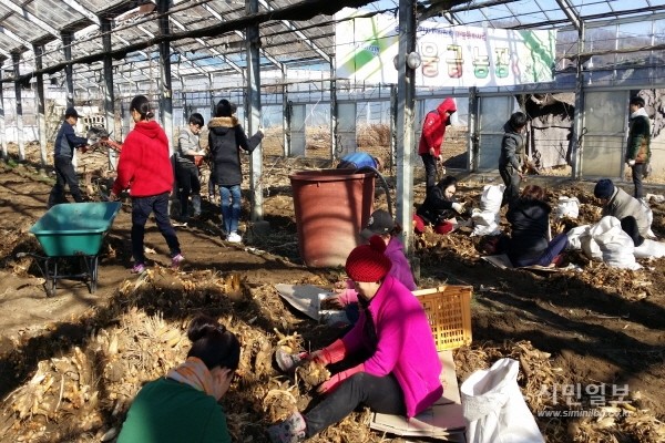지난 10일 경기 동두천시 송내동 주민자치위원회에서는 송내동 안골마을 텃밭에서 마을공동체사업으로 추진한 울금을 수확했다. 사진은 위원회 관계자들이 울금을 수확하는 모습.(사진제공=동두천시청)