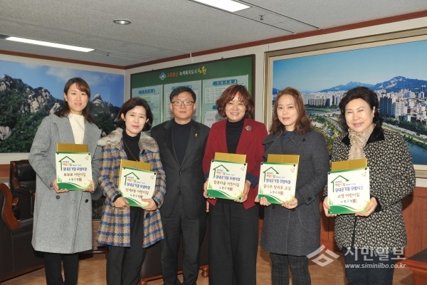 지난 12일 서울 노원구는 구청장실에서 '실내공기질 모범시설 인증서 수여식'을 개최했다. 사진은 김성환 구청장(왼쪽에서 세 번째)과 모범시설 운영자들이 인증서와 명판을 들고 기념촬영하는 모습.(사진제공=노원구청)