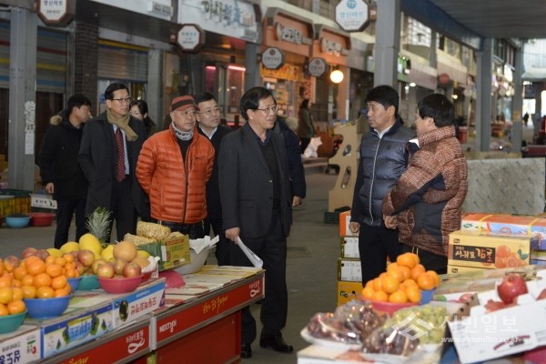 민천식 경기 포천시장 권한대행은 최근 겨울철 한파·화재 등의 구조적으로 안전사고에 취약한 전통시장과 장애인복지지설을 대상으로 현장 확인을 실시했다. 사진은 민 권한대행(가운데)이 시장 상인들과 이야기를 나누는 모습.(사진제공=포천시청)