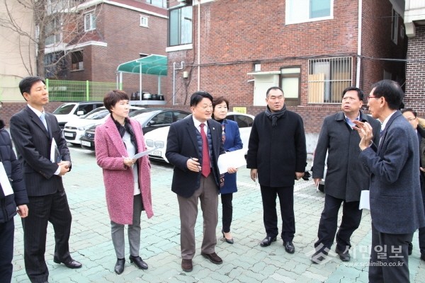 | ▲ 방학2동 마을극장 건립 예정부지를 방문한 예결특위 위원들이 관계자의 설명을 청취하고 있다.(사진제공=도봉구의회) | ||