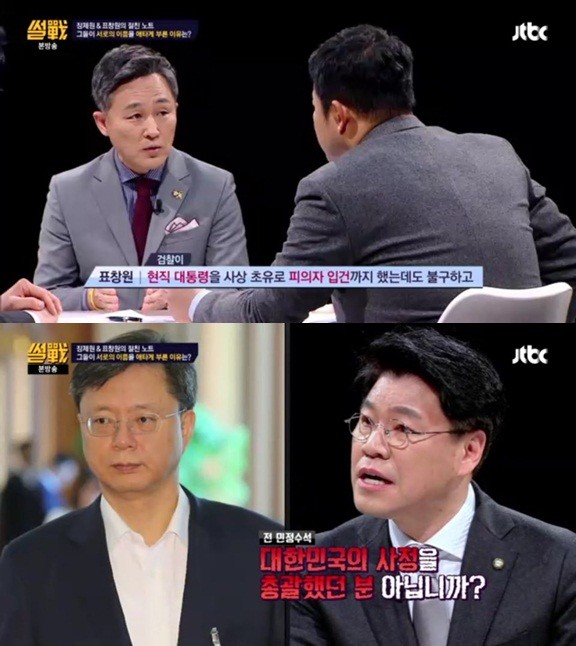 15일 오후 방송한 JTBC '썰전'에서는 장제원 새누리당 의원과 표창원 더불어 민주당 의원에 출연했다.