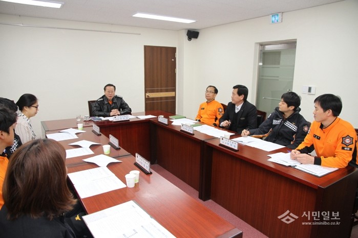 최근 구로소방서는 2층 소회의실에서 구조·구급업무 수행 중 유해물질 등에 접촉이 불가피한 대원의 안전한 현장활동을 위해 감염관련 전문의를 초빙해 감병방지위원회를 개최했다. 사진은 장현태 서장 및 참여자들이 회의하는 모습.(사진제공=구로소방서)