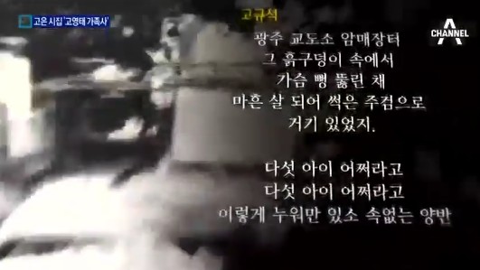 한편 고 씨의 아버지 고규석 씨는 1980년 5월 21일 일을 보러 광주 시내에 갔다 실종됐고, 열흘 후 광주교도소 안에 암매장된 상태로 발견됐다.
