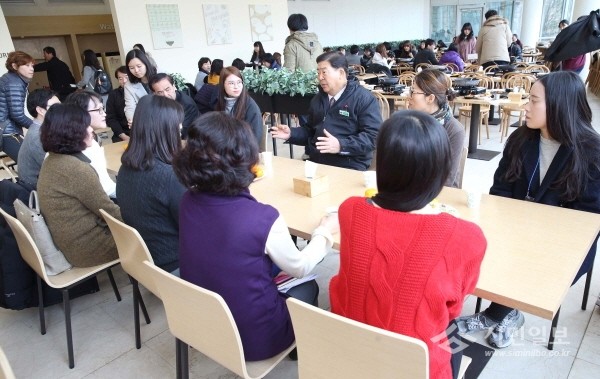 최근 서울 영등포구는 경기 가평군에 위치한 교원구몬 가평연구소에서 '찾·동 비전공유를 위한 민·관 합동 워크숍'을 개최했다. 사진은 조길형 구청장(뒷줄 오른쪽에서 세번째)과 관계자들이 이야기를 나누는 모습.(사진제공=영등포구청)